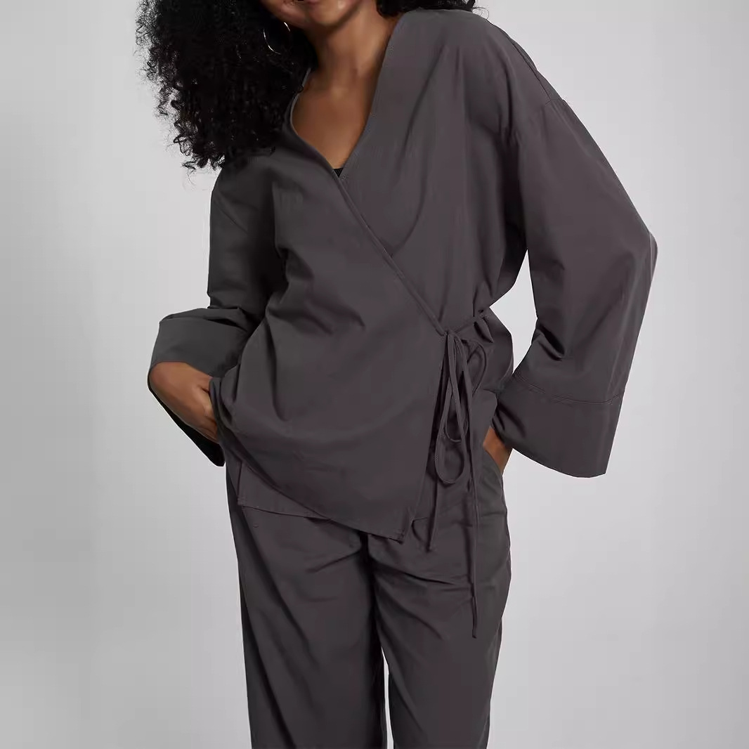 クロスボーダーの女性服の卸売欧米風のゆったりした雰囲気のファッションスーツの質感の双襟と服式のコートのズボンの秋