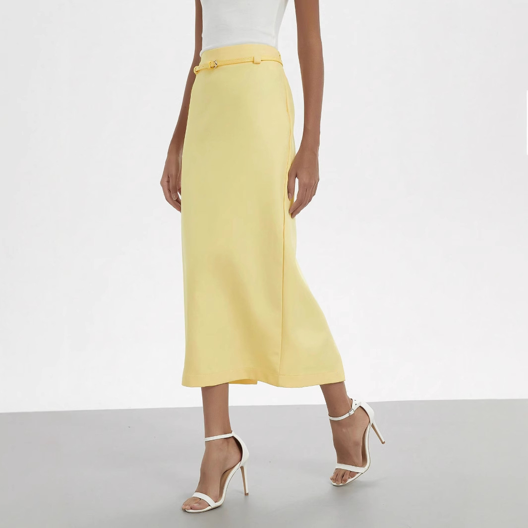 クロスボーダー婦人服卸売ヨーロッパとアメリカンスタイルのベルト付きハイウエストスリットミドル丈スカート多用途スリムストレートスカート