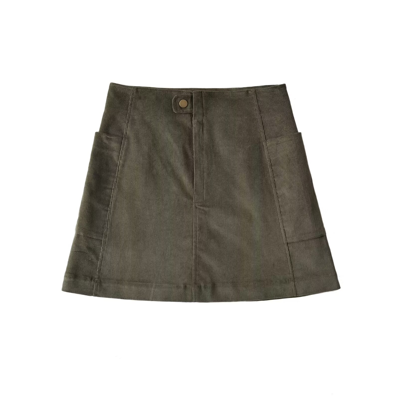クロスボーダー婦人服卸売コーデュロイスカートレトロハイウエスト痩身通勤脚長スリットAラインスカートショートスカート