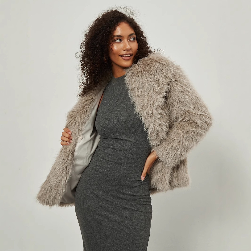 国境を越えた婦人服卸売り欧米風ファッション人工毛皮保温コート2024冬の新型襟付きコート