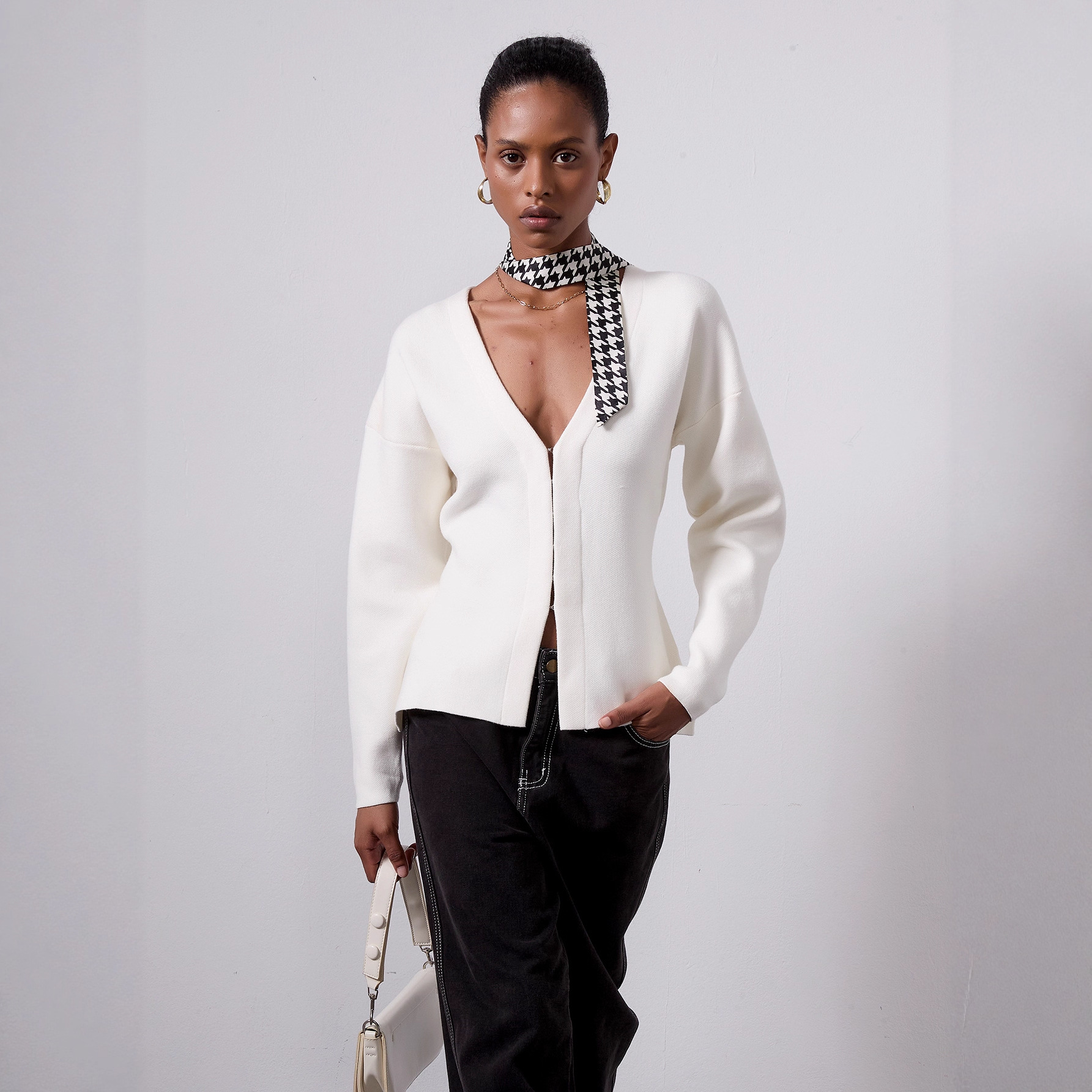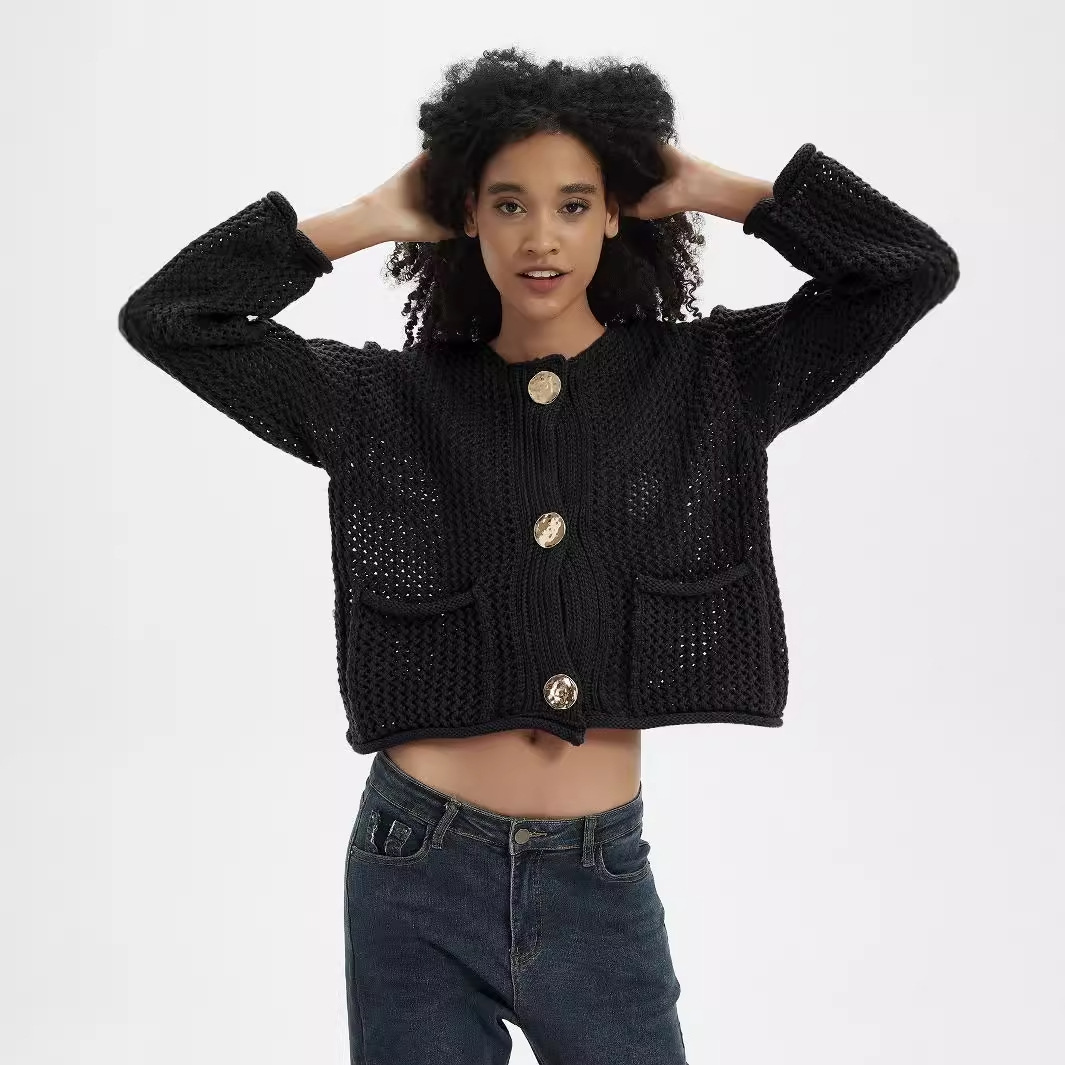 国境を越えた電気商女装卸売り欧米風ファッションニットカーディガン秋vネック腰がやせて見えるセーターコート