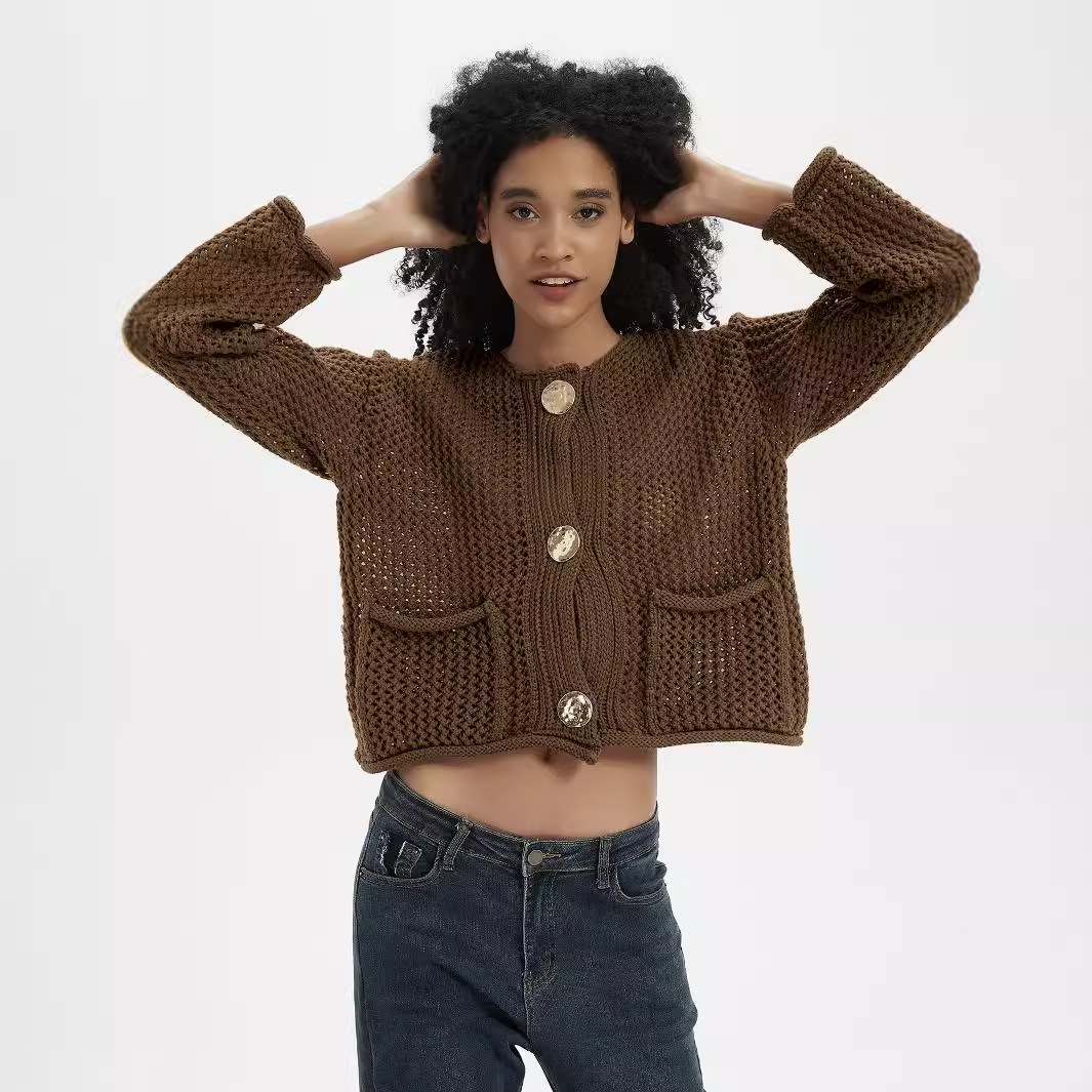 アマゾンクロスボーダー女装欧米風カジュアル百合粗針ニットカーディガン秋新作純色セーターコート