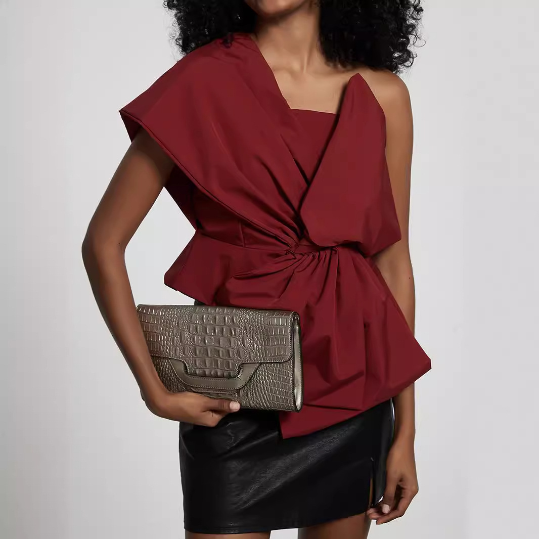 クロスボーダーの外国貿易の婦人服の卸売りのデザイン感の大きい蝶結びの装飾の肩を露出して身を修めるベストの欧米風の気質の上着
