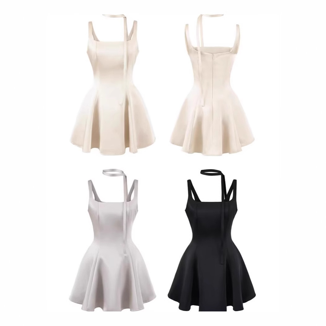 クロスボーダー婦人服卸売ヨーロッパとアメリカンスタイルの婦人服新しいスタイルのリボン装飾ショートスカートスタイルの裾ノースリーブトップ 3067008