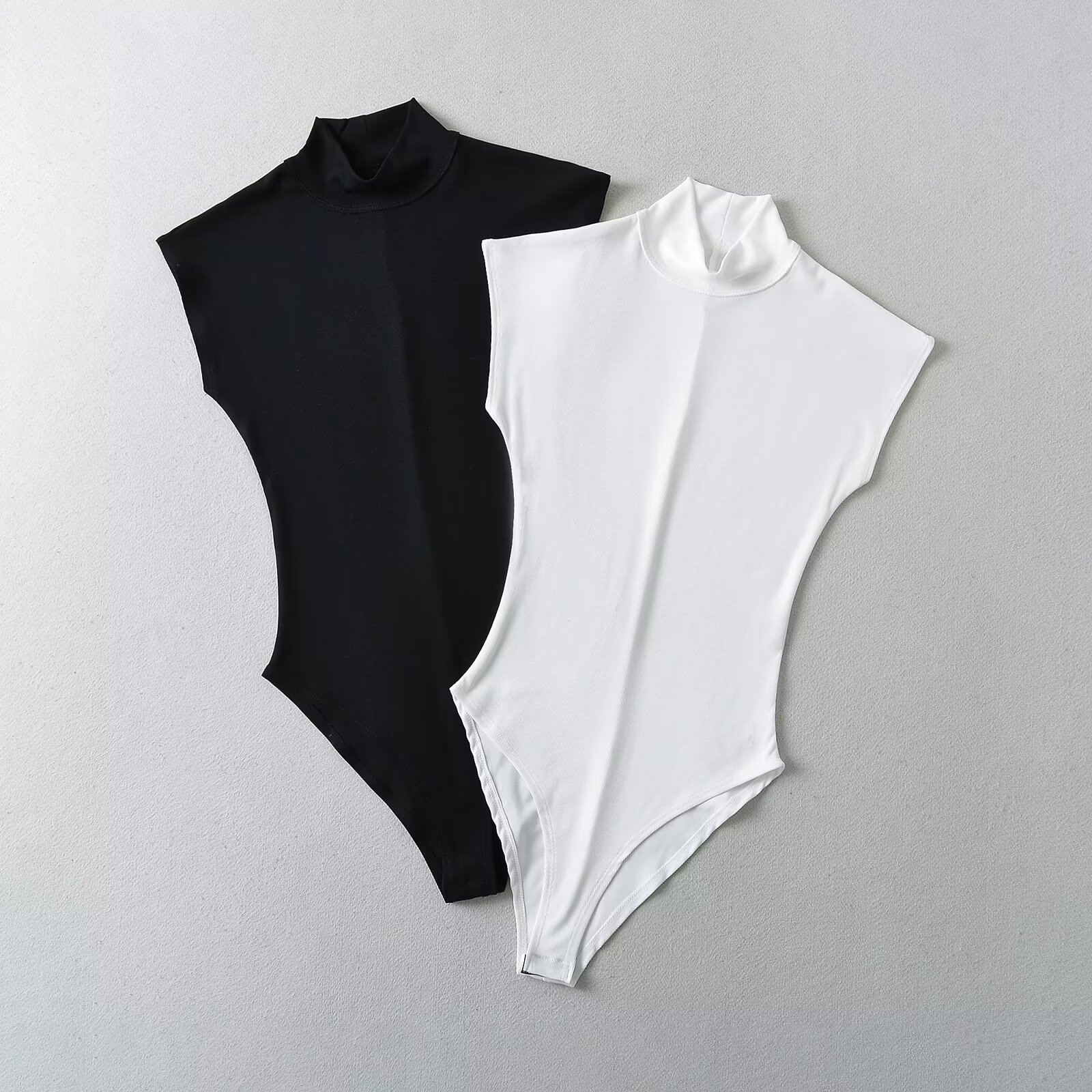 クロスボーダー婦人服卸売ヨーロッパとアメリカのソリッドカラーのホットガールワンピーストップススリムフィットハイカラー半袖Tシャツボトリングシャツ