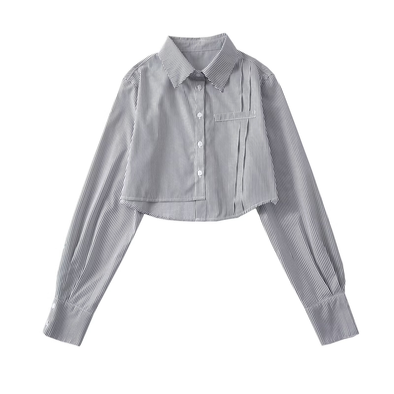 クロスボーダー婦人服卸売ヨーロッパとアメリカンスタイルのポインテッドカラールーズストライプ多用途シャツ韓国スタイルのミドル丈トップ