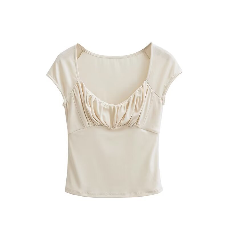 クロスボーダー婦人服卸売夏の新しい純粋な欲望ホットガール半袖プリーツ Tシャツスリムフィットショート半袖トップ