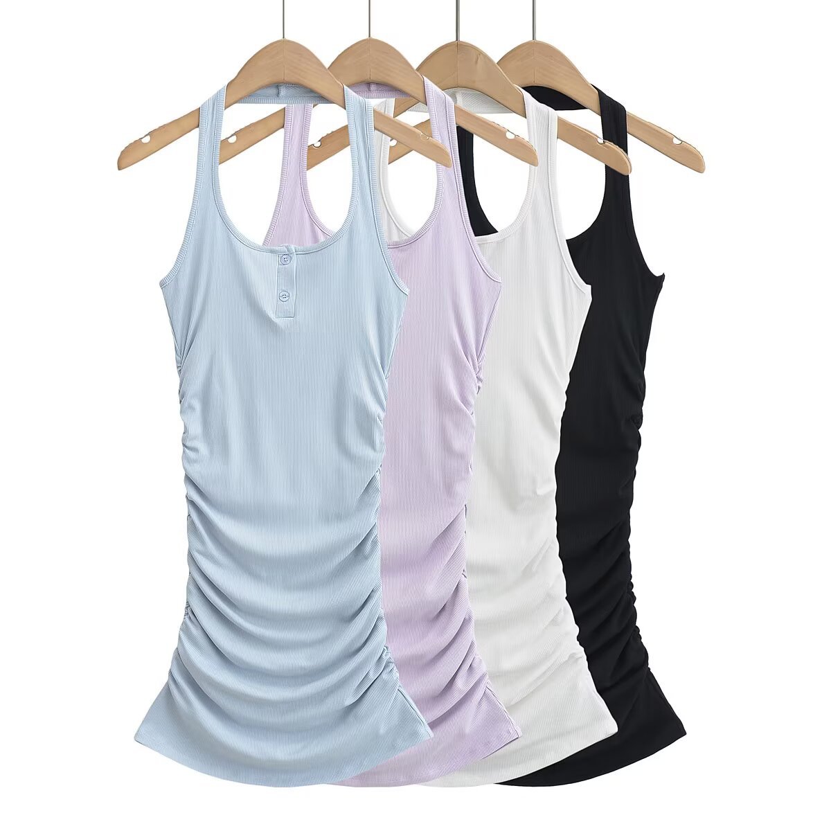 国境を越えた女性の卸売ホットガールファッション多用途ホルターネックプリーツスリムフィットノースリーブベストバックレスドレス