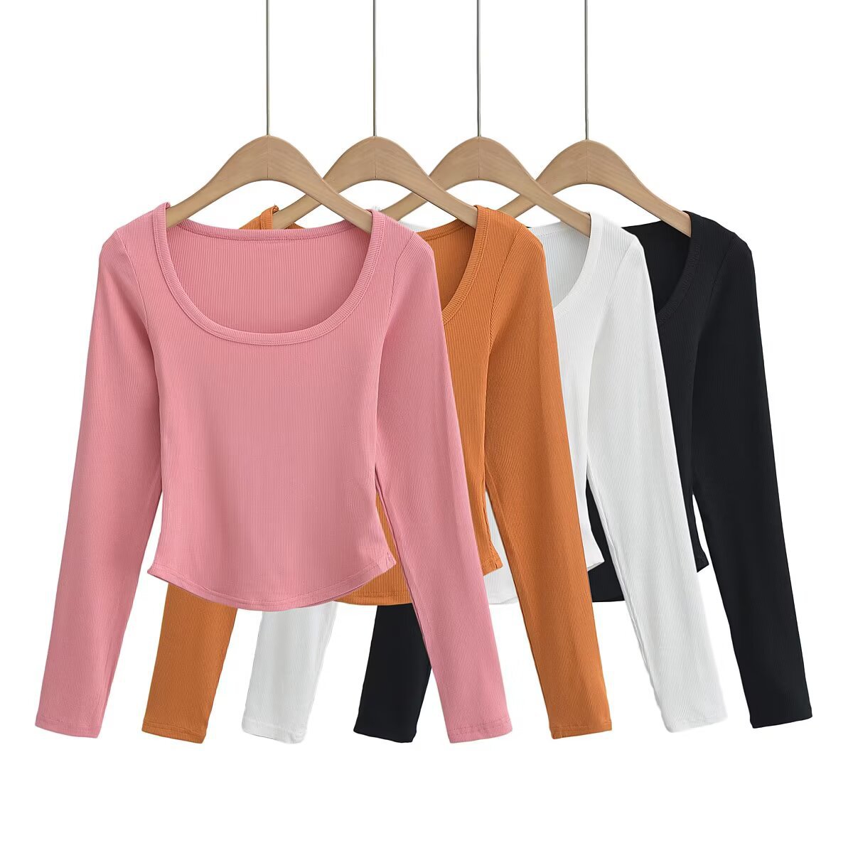 クロスボーダー婦人服卸売純粋な欲望スタイルローカットスクエアカラータイトボトリングシャツ痩身アウタースリム長袖Tシャツ