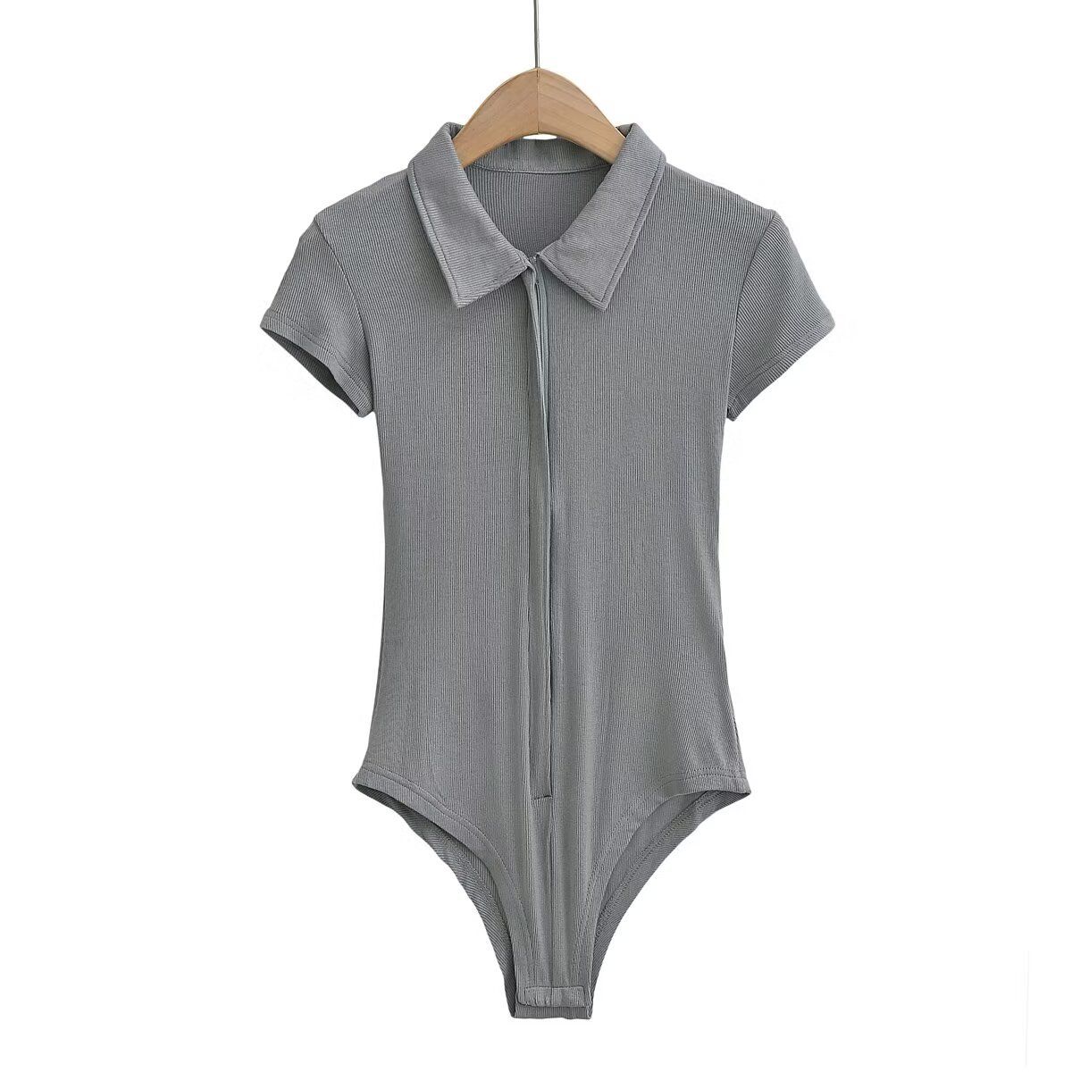 クロスボーダー婦人服卸売ヨーロッパとアメリカンスタイルのポロカラースリム半袖ジャンプスーツ純粋な欲望多用途ボトムストップ