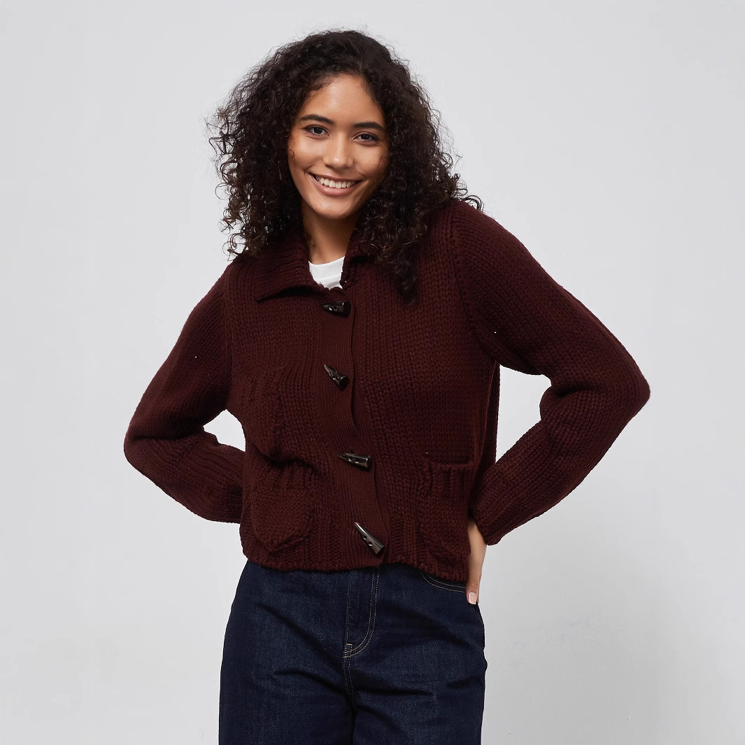 クロスボーダーの女性服の卸売り欧米風のファッション的なダブルボタンの襟のニットのセーターの秋の新型の襟の短いカーディガン