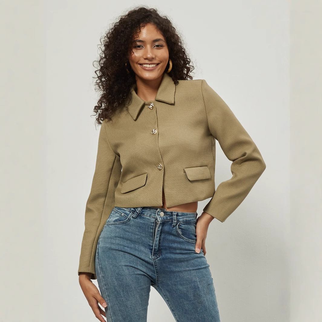 速売通アマゾンクロスボーダー女装卸売り欧米風ファッションシンプルな襟付きジャケット秋のショートコート
