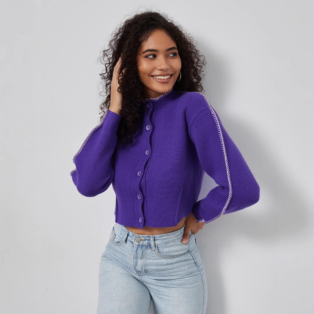 速売通アマゾン女装卸売り欧米風ファッション色合わせニットカーディガン秋の新型ジャケット