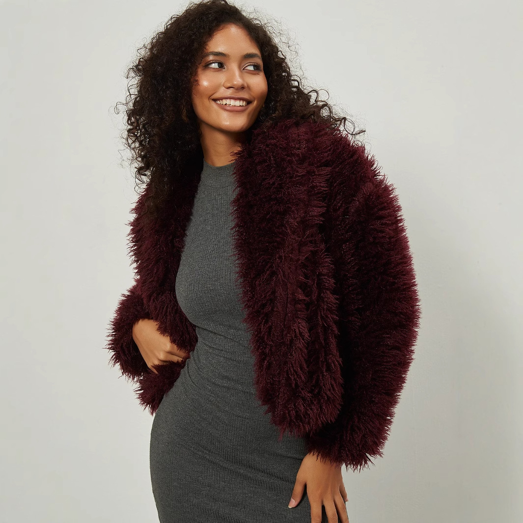 アマゾンクロスボーダー婦人服卸売り欧米風気質百合毛コート秋冬新作ワイドスリーブラシャジャケット