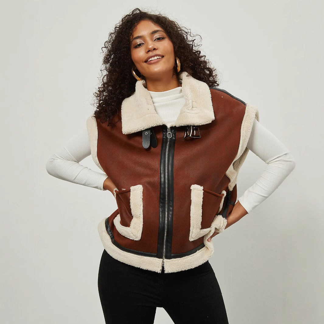 アマゾン速売通クロスボーダー女装卸売り欧米風レトロ毛皮一体チョッキ馬甲保温羊小毛