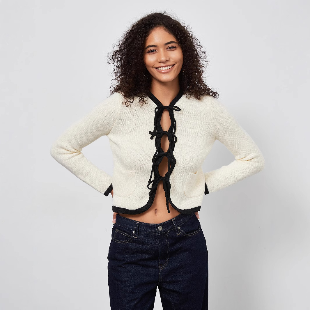 国境を越えた女装卸売り欧米風ファッションセクシーな蝶ネクタイのニットウェア秋の新型痩せたカーディガン