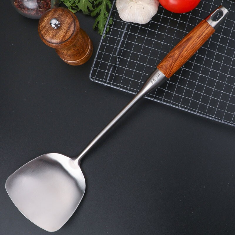 304 ステンレス鋼家庭用スパチュラスプーンザル粉末スプーン調理用スパチュラ厚みのあるキッチンローズウッド
