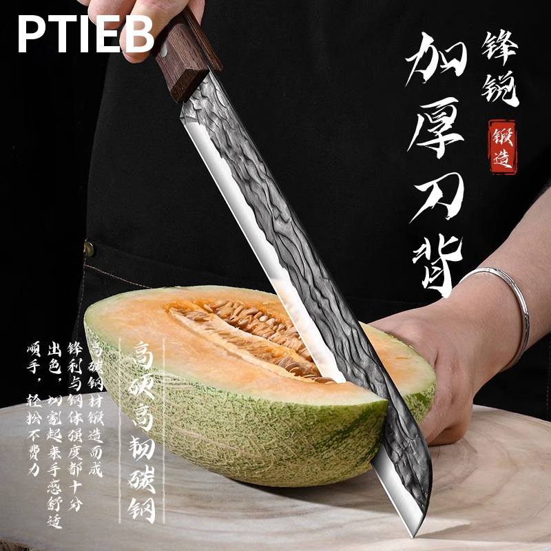 家庭用鍛造メロンカッター、スイカを切るための鋭いステンレス鋼の刃、スイカを切るための商業用大型拡張フルーツナイフ