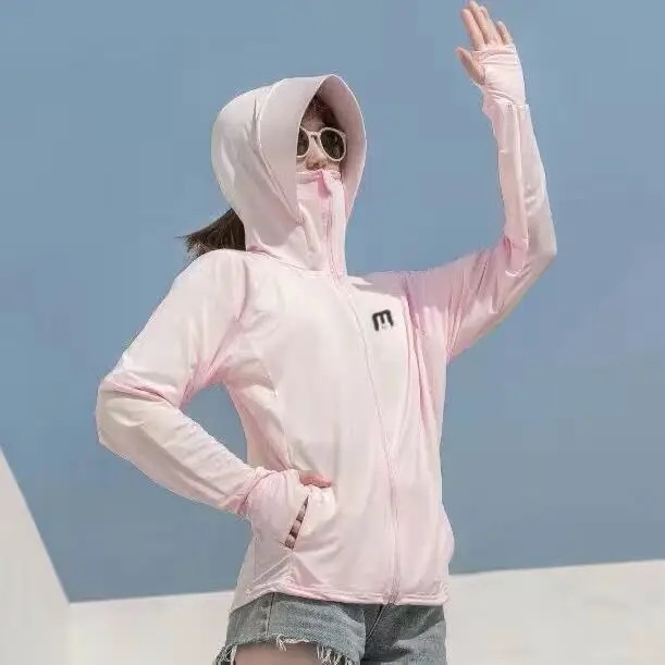 氷糸日焼け止め服の女性コート2024夏の新型軽薄ファッションには、通気性のあるカーディガン長袖の帽子付き日焼け止め服があります。