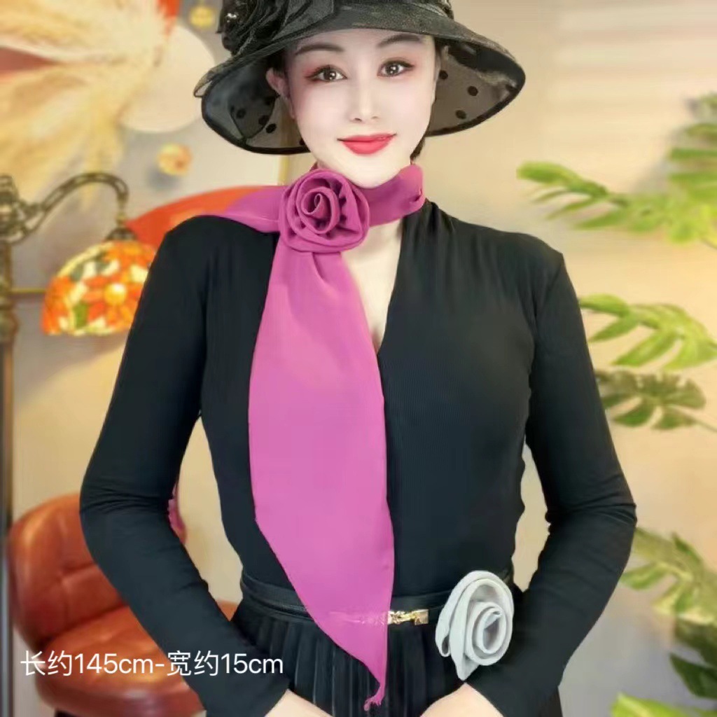 春夏の新型純色のバラの襟の花は旅行のファッションの気質の雪の紡績の糸の薄い柔らかい女性のスカーフを飾ります。