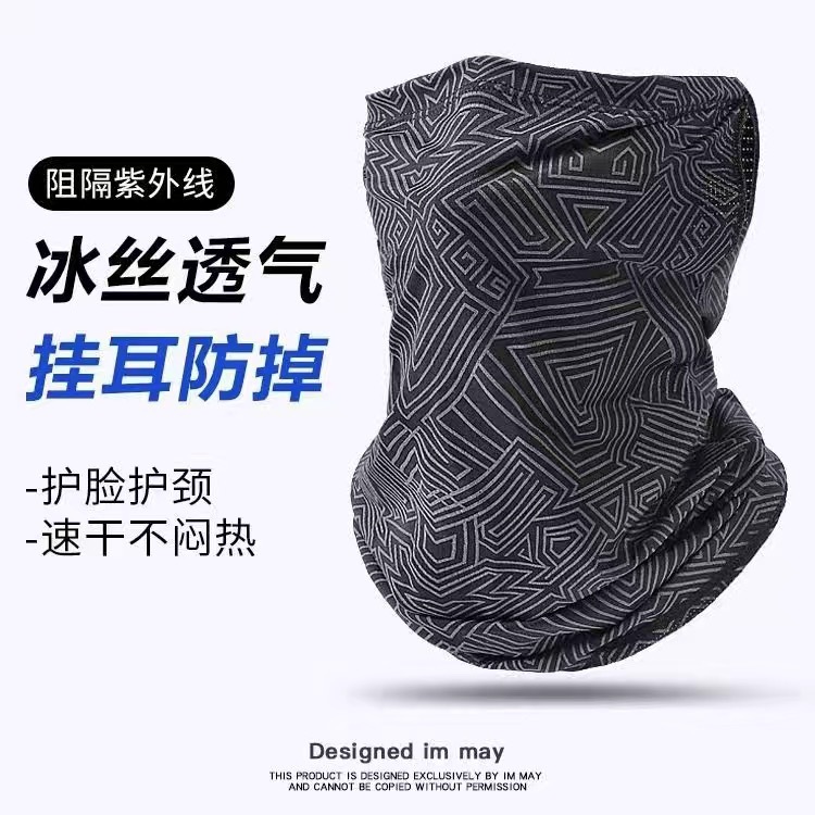 夏の耳掛け式日焼け止めマスク氷糸網糸通気性全顔カバー男女運動釣り紫外線保護首