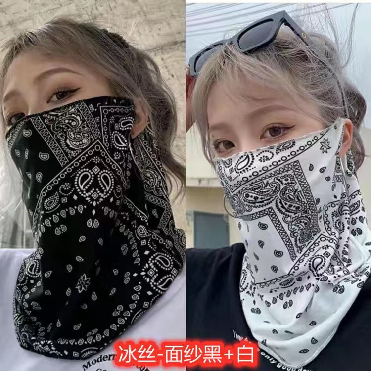夏の日焼け止め腰果花氷糸通気氷袖ベール2点セット全顔首保護女性マスク耳掛け女