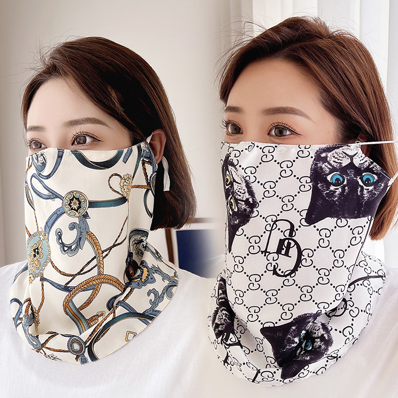 春夏の日焼け止め首保護マスクで首を囲む女性の通気性マスクで自転車で運転するシルクスカーフの薄いベール