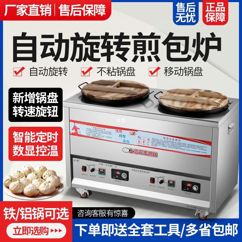 雲麦商用全自動回転フライパン鍋貼りフライパン機ガス電熱屋台生煎り包み温水フライパンzb