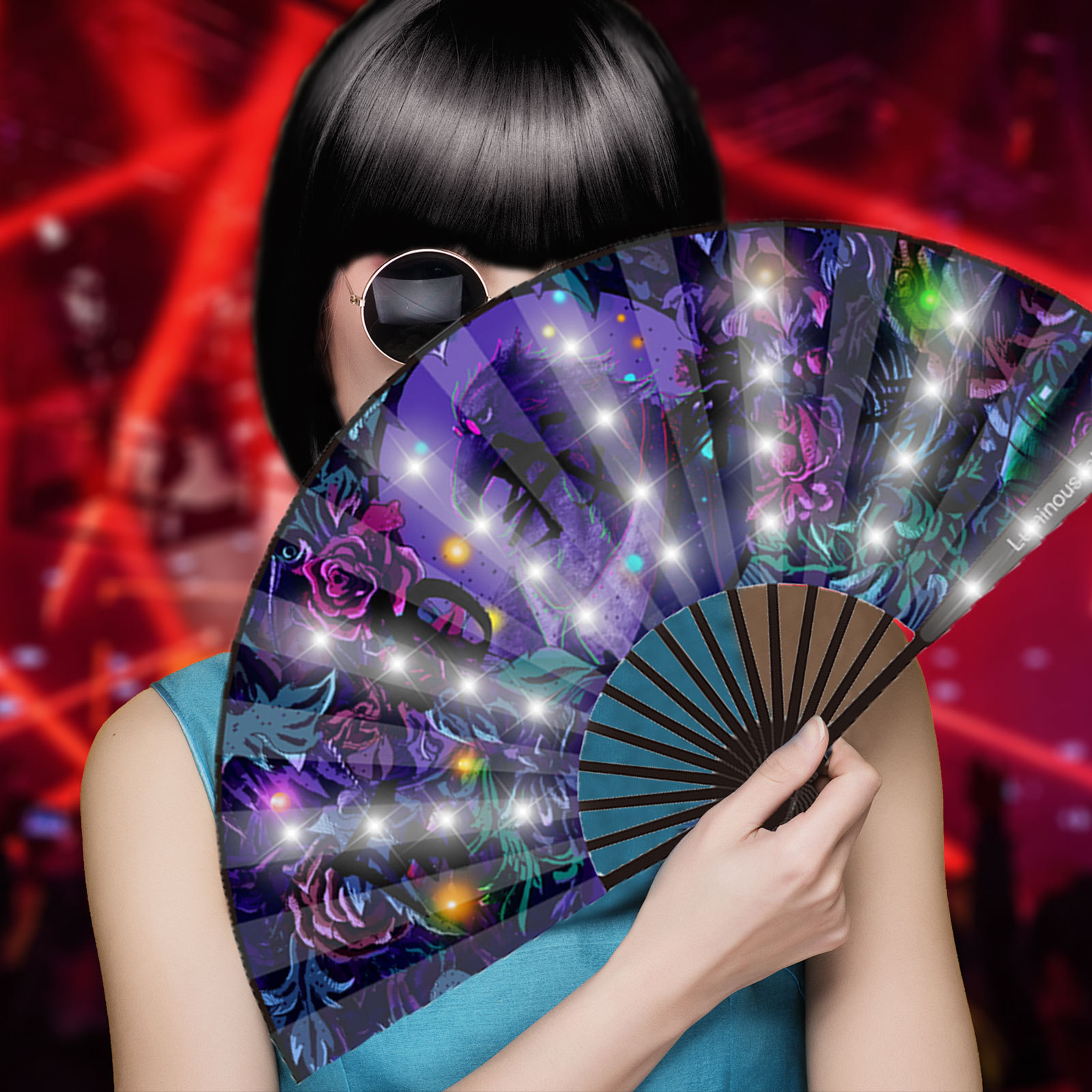 カラーled発光手持ち折り畳み扇ハイライトled灯発光折り畳み扇斬新絹布折り畳み扇は個人予約を受ける