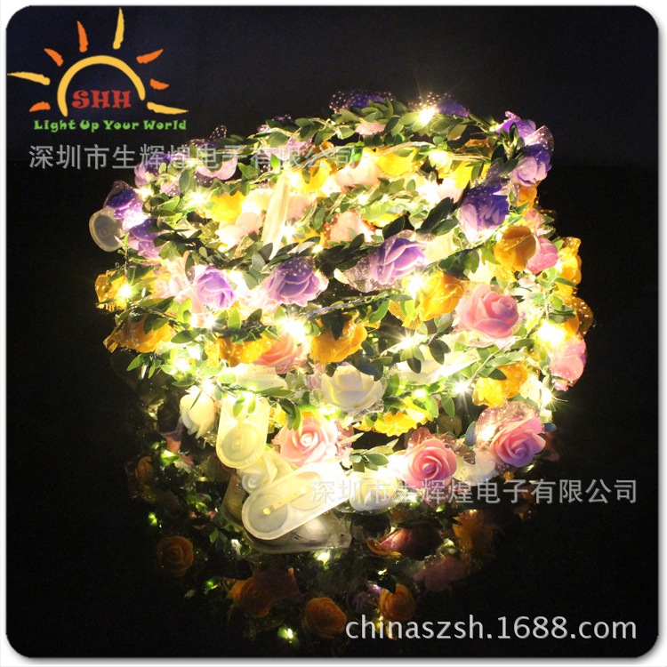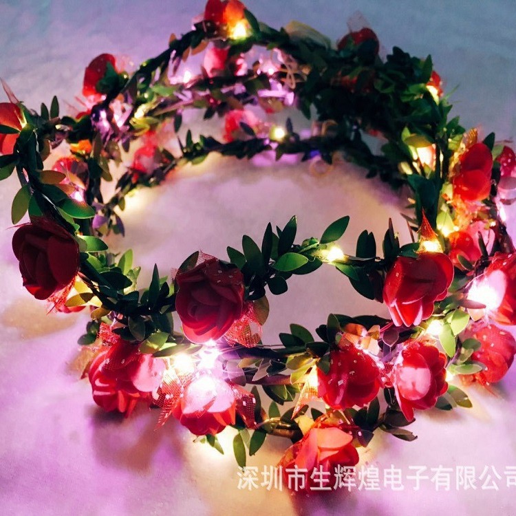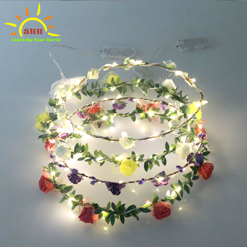 発光花輪頭飾りled銅線灯花輪クリスマス装飾灯ハワイled小型花花輪