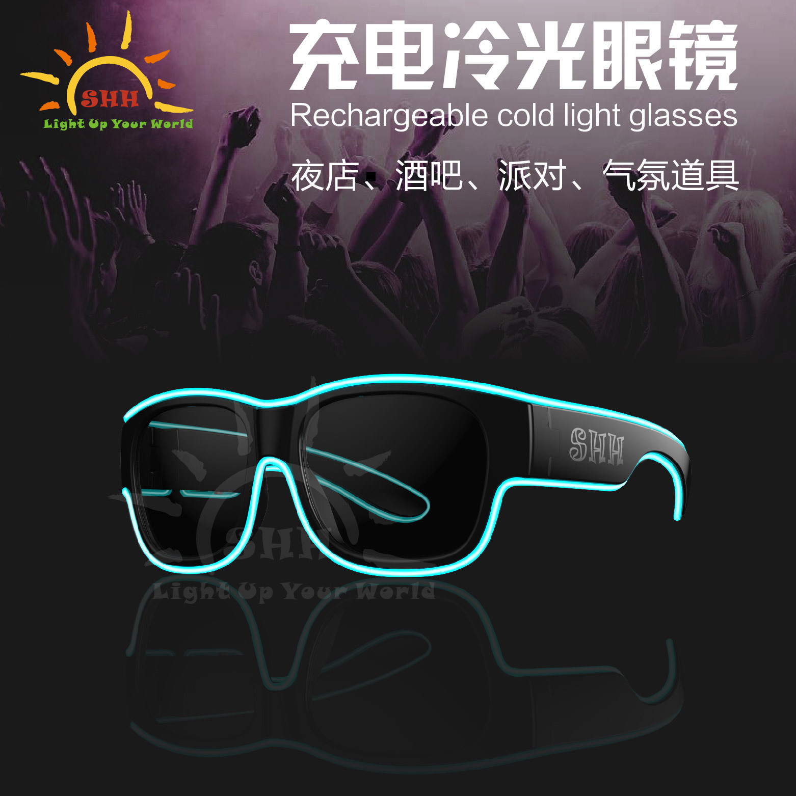 冷光充電メガネ発光サングラスカスタマイズ可能なロゴoemブランドバーパーティーledメガネ