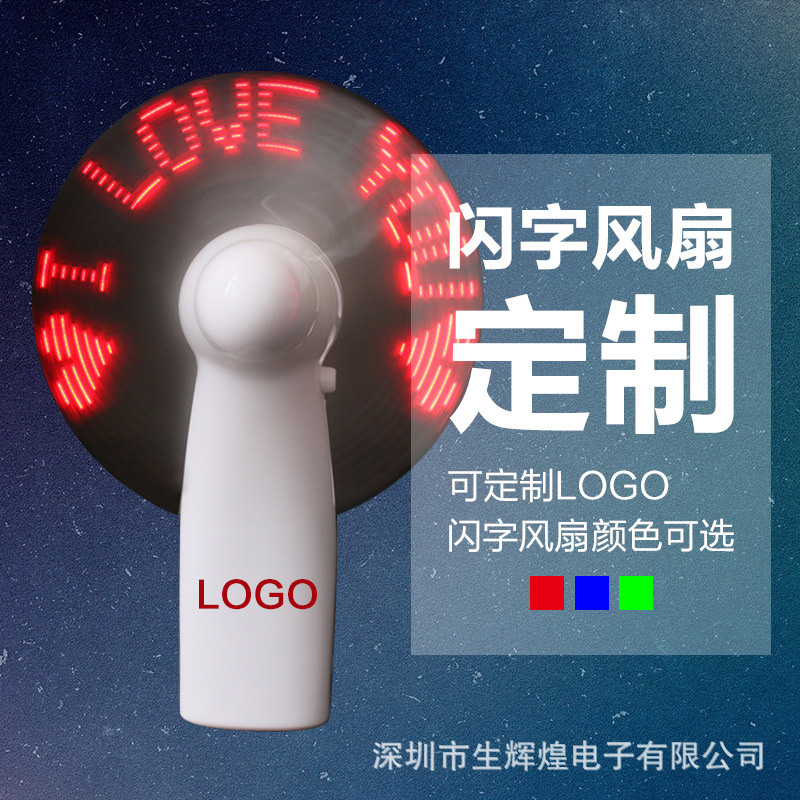フラッシュワードファンled発光ミニ手持ちポケットファン広告クリエイティブギフトusb充電フラッシュワードファン