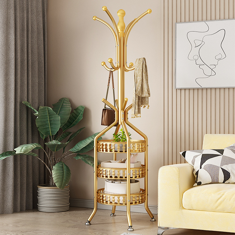 鉄芸服ラック床置き室内ハンガー家庭用縦式衣類収納棚多機能置物掛けラック