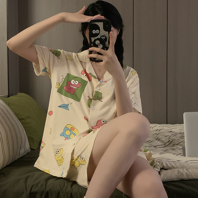 網紅日系ins風夏パジャマ女性漫画ワニさん新半袖半ズボン減齢風ホームウェア