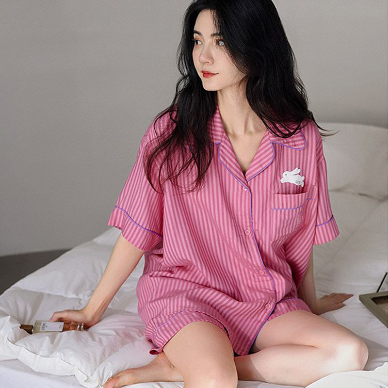 カジュアルパジャマ女性夏宅家少女ins風カーディガン半袖半ズボン上質綿質外着ホームウェア
