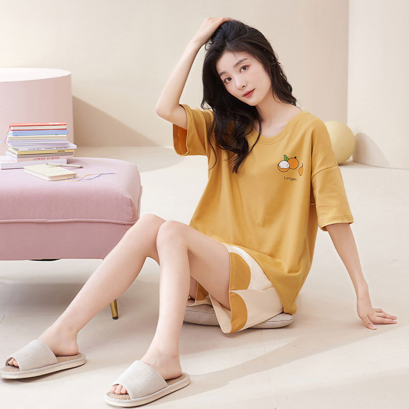 韓国系の少女風の夏のパジャマの女性は綿の丸首の半袖の半ズボンの学生のレジャー寮をまねて部屋の服を着ることができます。
