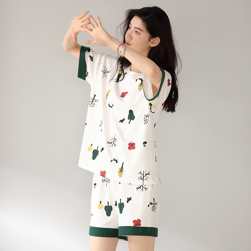 日系アニメパジャマ女子学生百合丸首半袖半ズボンカジュアル風減齢可家庭服セット
