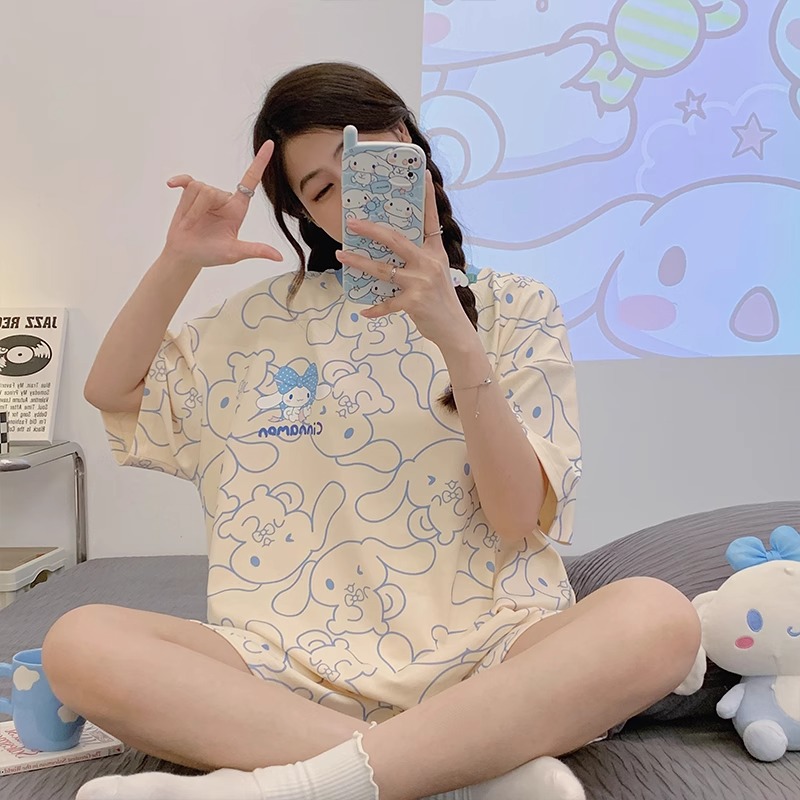 パジャマの女性の夏の新型の日本のアニメの玉桂の犬の丸首の半袖の半ズボンの学生のレジャー服の部屋の服のスーツ