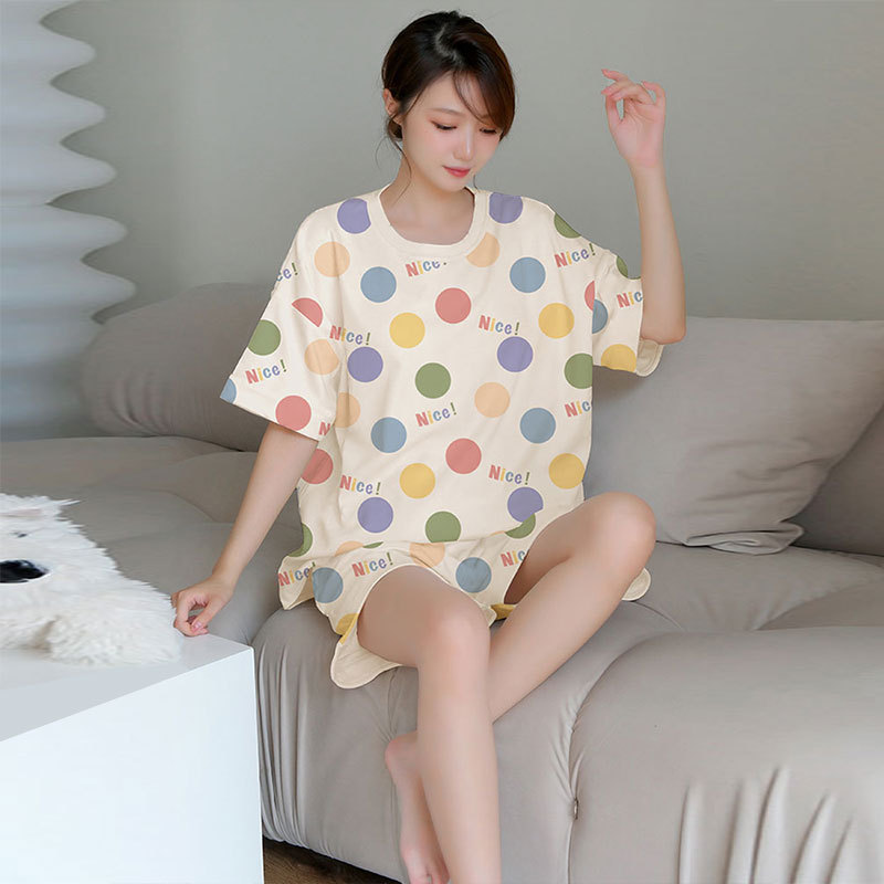 (カラフルな夏)夏の新しいパジャマ女性少女風カジュアル丸首半袖パンツ減齢家庭服カバー