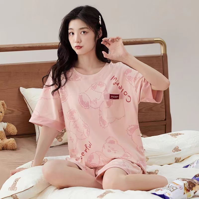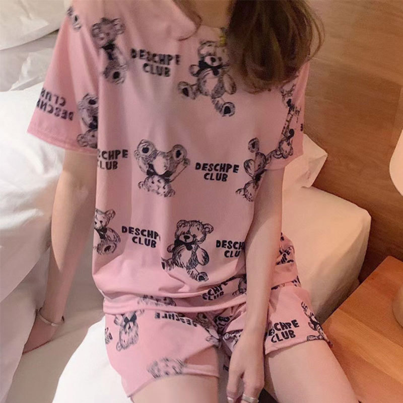 少女風網赤熊パジャマ女夏は綿丸首半袖半ズボンを真似て甘くて可愛いです。