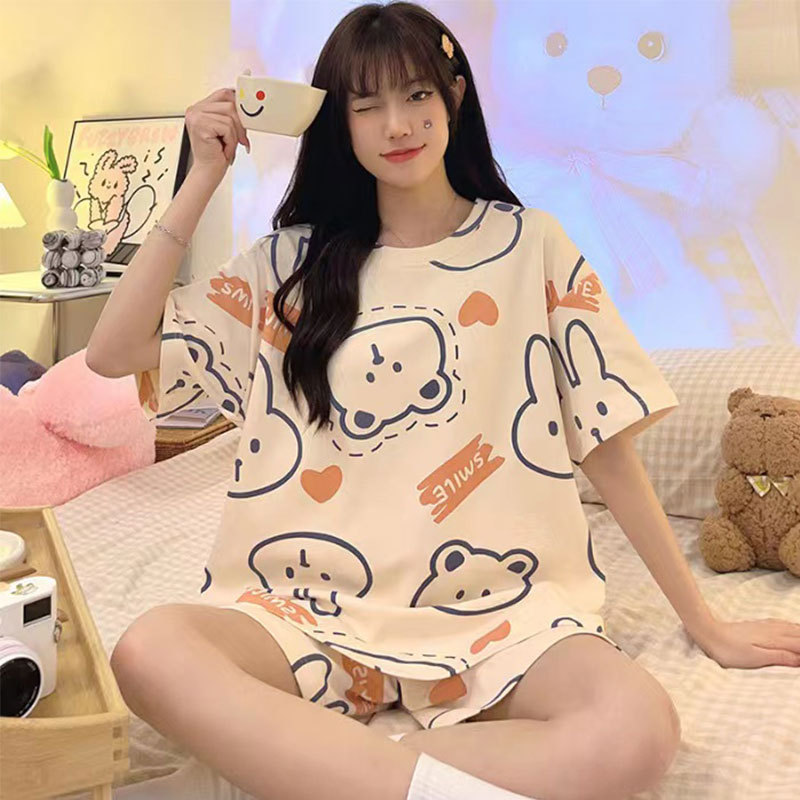 工場代発減齢パジャマ女性アニメ少女風カジュアル丸首半袖パンツ外着ホームウェア2点セット