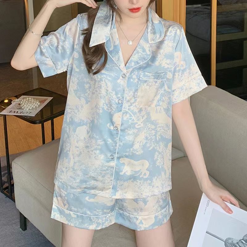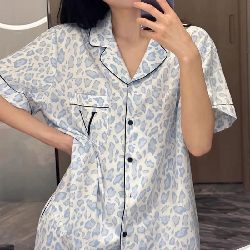 パジャマ女性夏かわいい風日系豹柄半袖パンツinsネット赤起爆女性夏清涼薄金