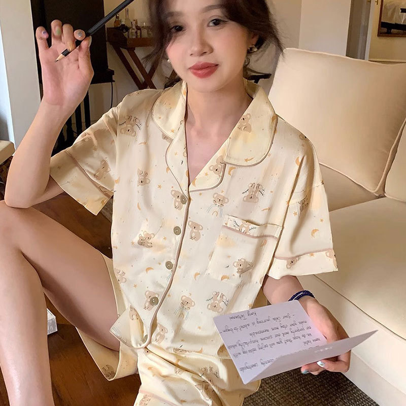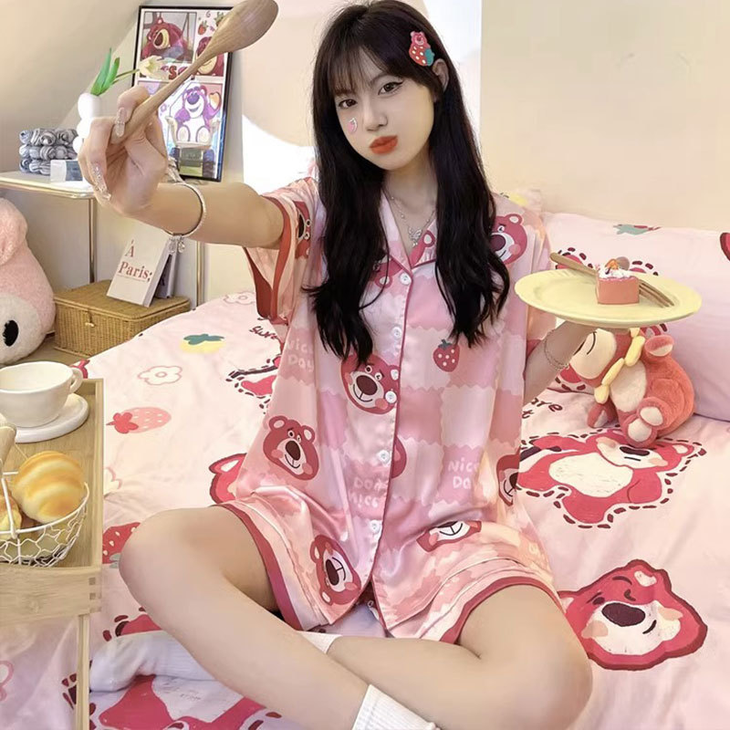 韓国版ins風アニメかわいいベアーパジャマ女性夏半袖半ズボンゆるい家服小衆セット