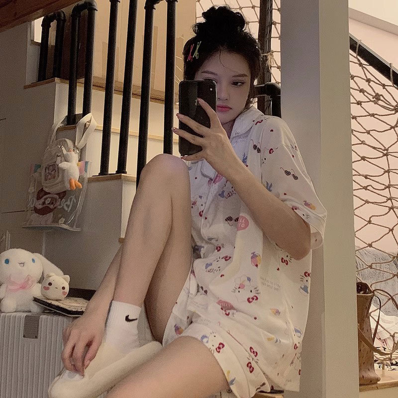 夏のパジャマの女性半袖パンツが学生の韓国版日系insの2着の部屋服をめくった
