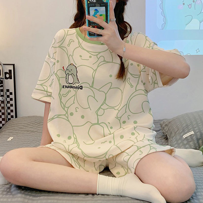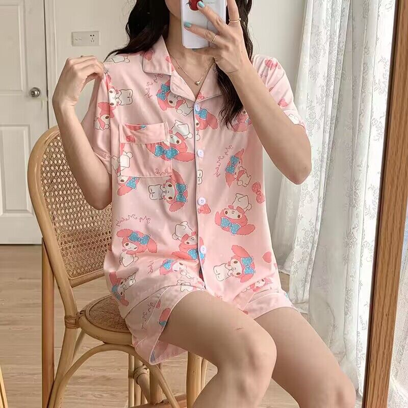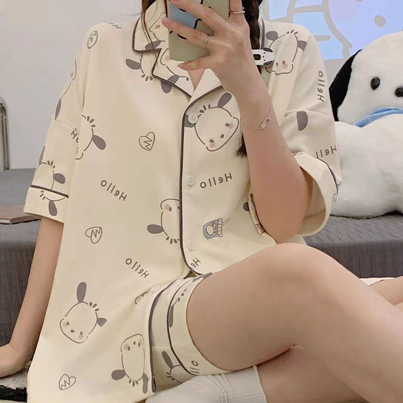 パジャマ女性夏日本風半袖半ズボン新学生甘美薄手アニメホーム服セット外着可