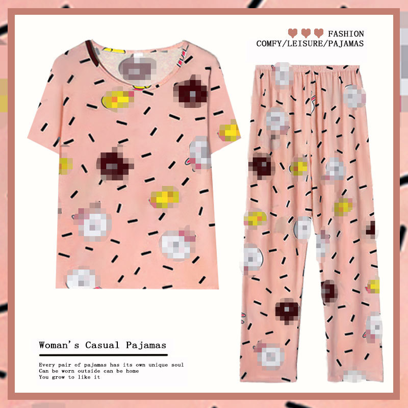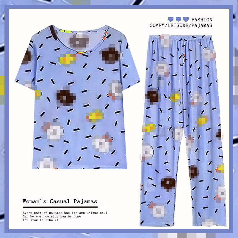 女性用コミックスタイルパジャマ、夏のハイエンド絶妙なカーディガン、模造綿の女の子の半袖ルーズカジュアルホームウェアセット