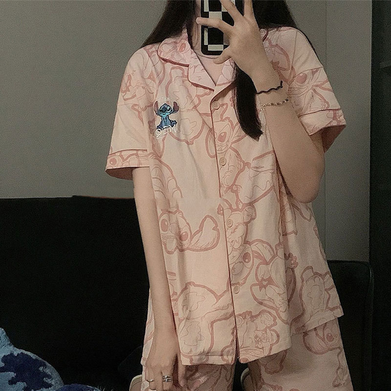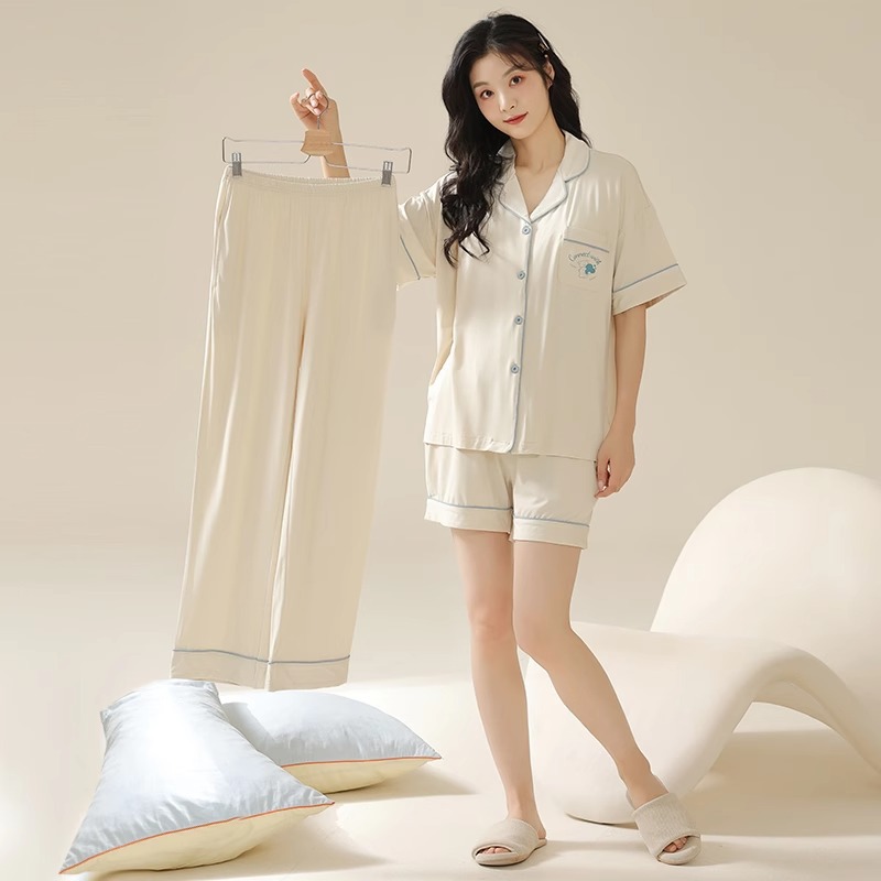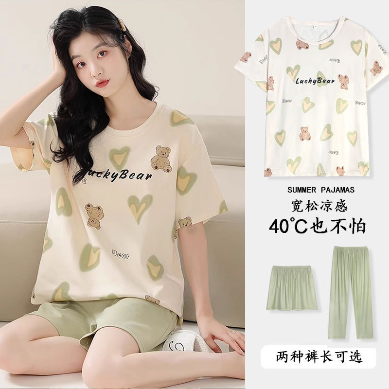 日本のINSスタイルの夏の甘いパジャマ女性用模造綿女の子ショートロングスポーツウェアルーズカジュアルホームウェアセット