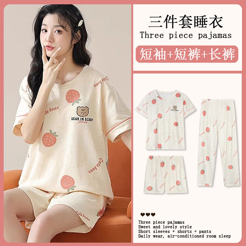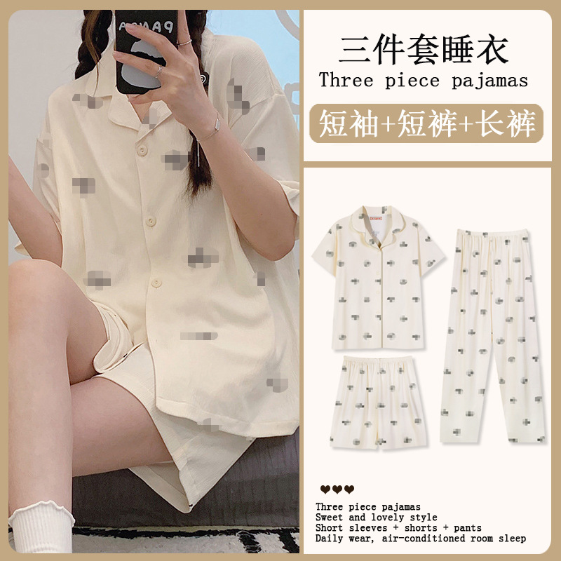 Douyin ライブ日本製パジャマ女性の夏カーディガン模造綿半袖 3 点セットかわいいカジュアルスタイルホームウェアセット