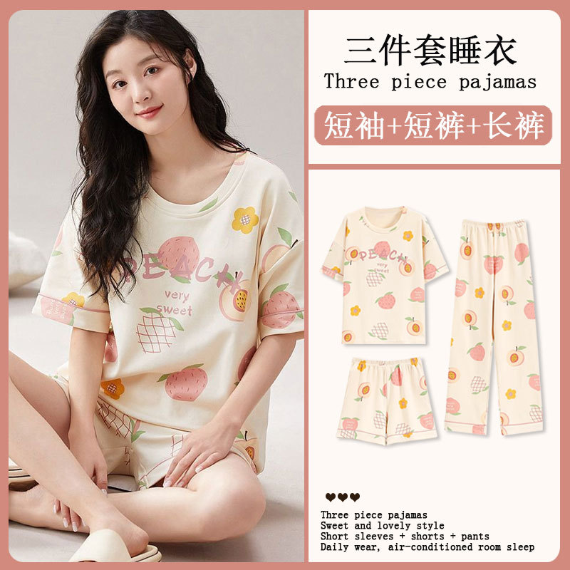 韓国風春夏パジャマレディースカーディガンガール半袖模造綿3点セットシンプルゆったり大きいサイズホーム服セット