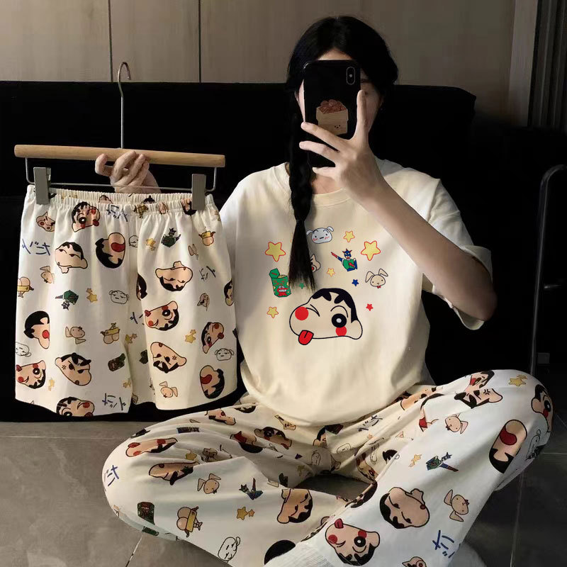 [クレヨンしんちゃん] 夏パジャマ レディース 薄手 模造綿 ガーリースタイル 漫画 3点セット 学生寮 ホーム服